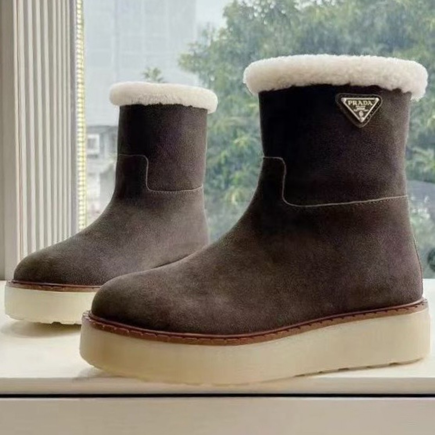 Зимние ботинки Prada с меховой отделкой PREMIUM качества