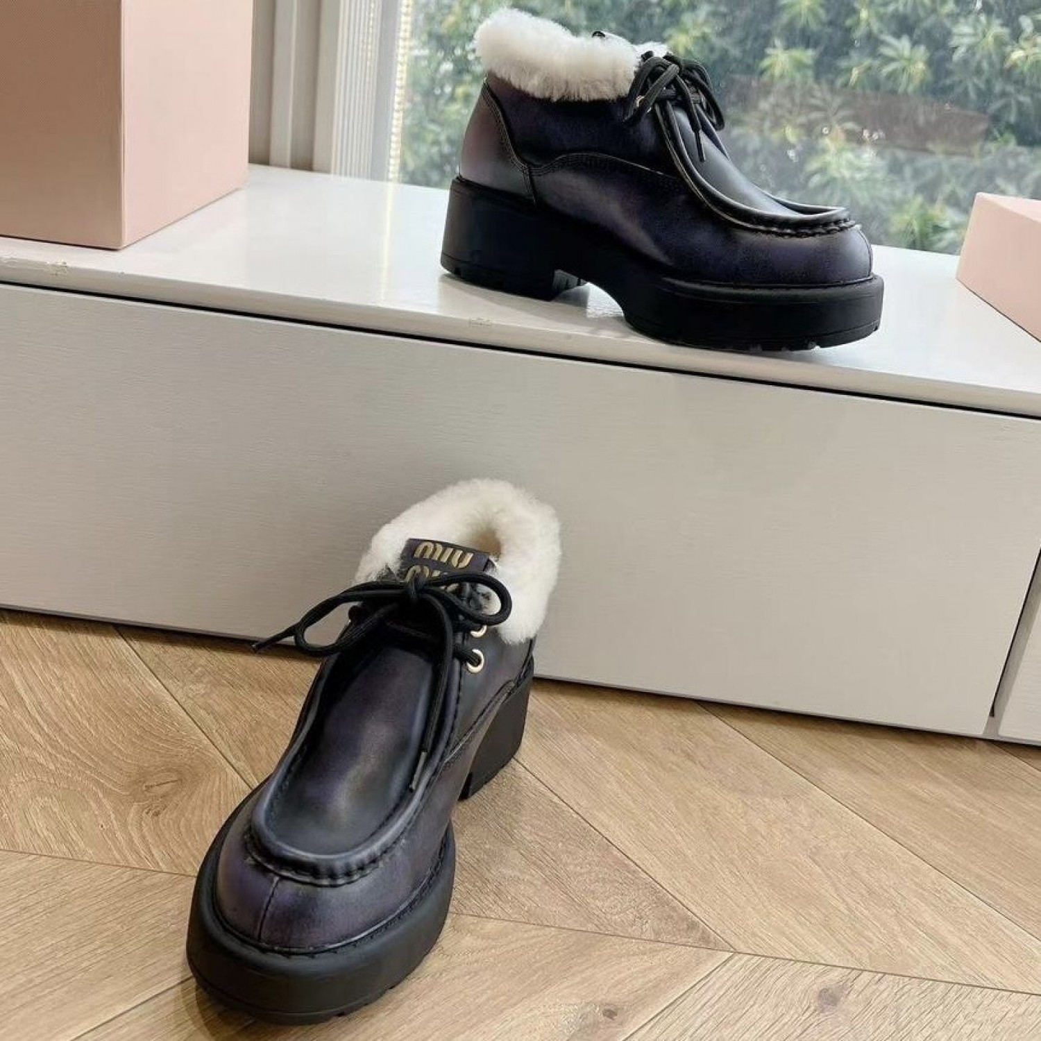 Зимние кожаные ботильоны Miu Miu Fume PREMIUM качества