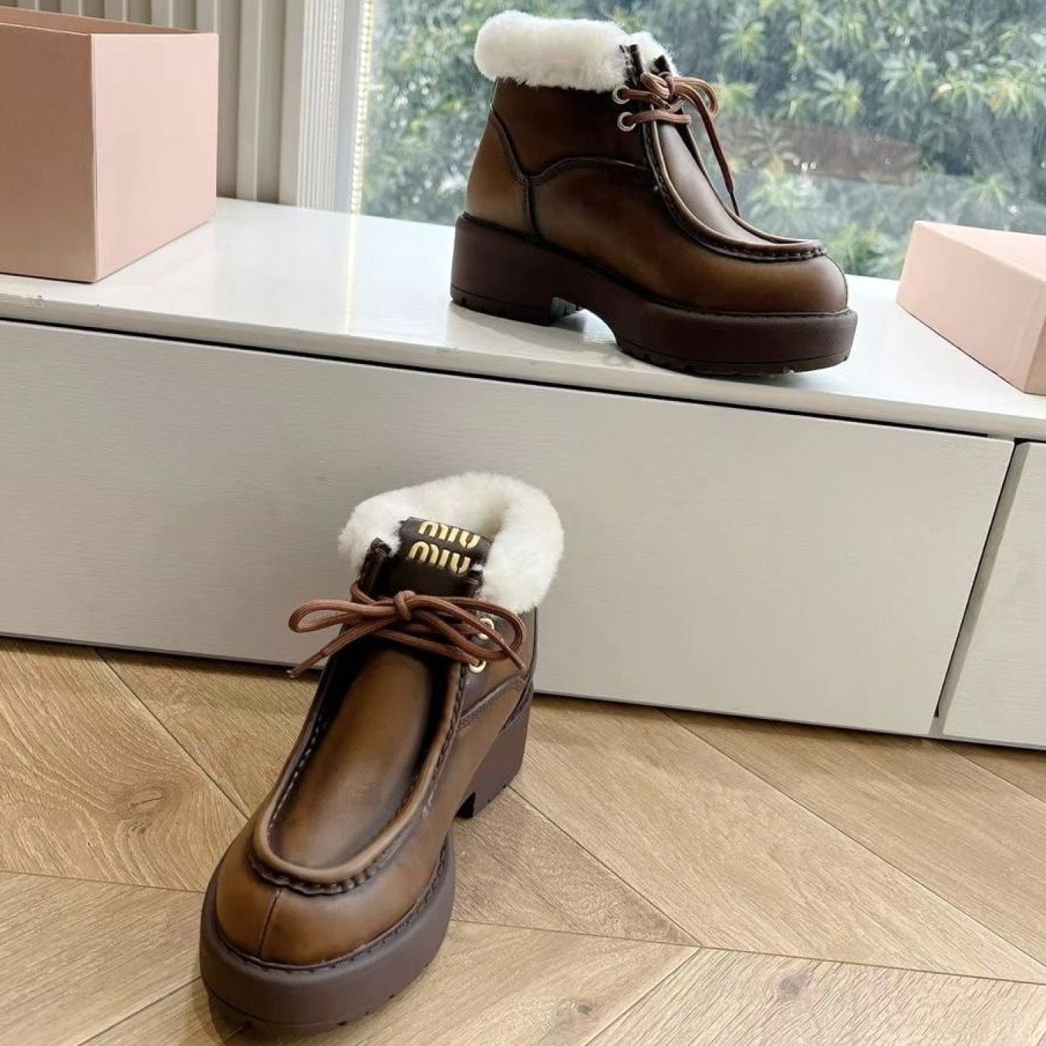 Зимние кожаные ботильоны Miu Miu Fume PREMIUM качества