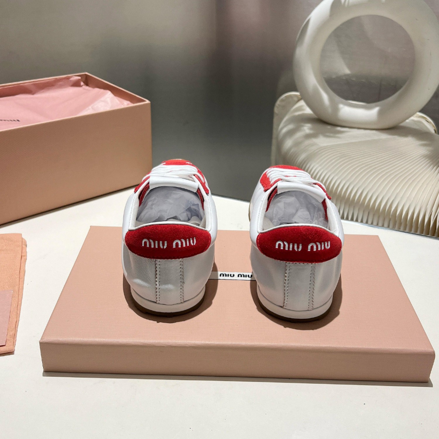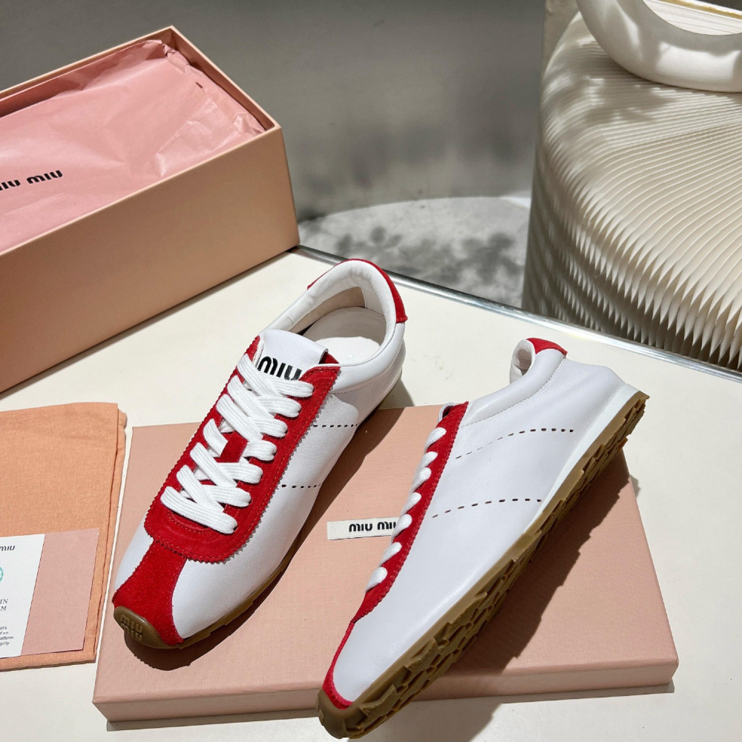 Изысканное исполнение и материалы сочетаются с элегантным и очень легким дизайном этих новых замшевых кроссовок Miu Miu. Логотип выделяется на язычке и заднике благодаря своему культовому характеру.
