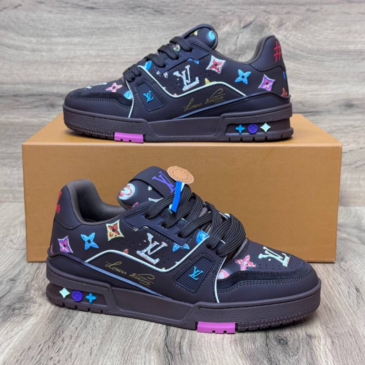 - Легендарные кроссовки LV Trainer, изначально созданные Вирджилом Абло для мужчин, теперь представлены в женской интерпретации. Эта версия выполнена из зернистой телячьей кожи, частично тисненой узором Monogram, а двухцветная пастельная расцветка придает модели женственный вид. Эта модель примечательна резиновыми вставками и технической подошвой с узором Monogram Flowers.