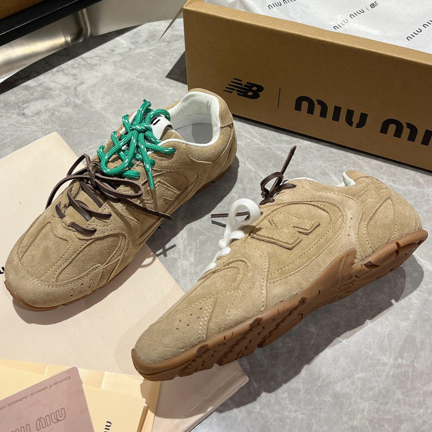 • Модель, объединяющая изысканные мотивы бренда Miu Miu и спортивный стиль от New Balance