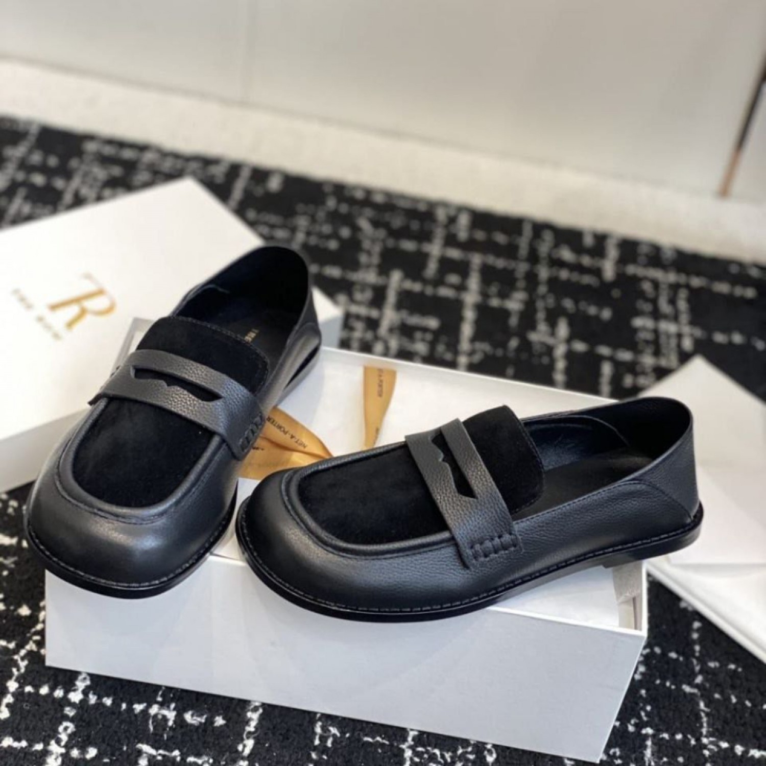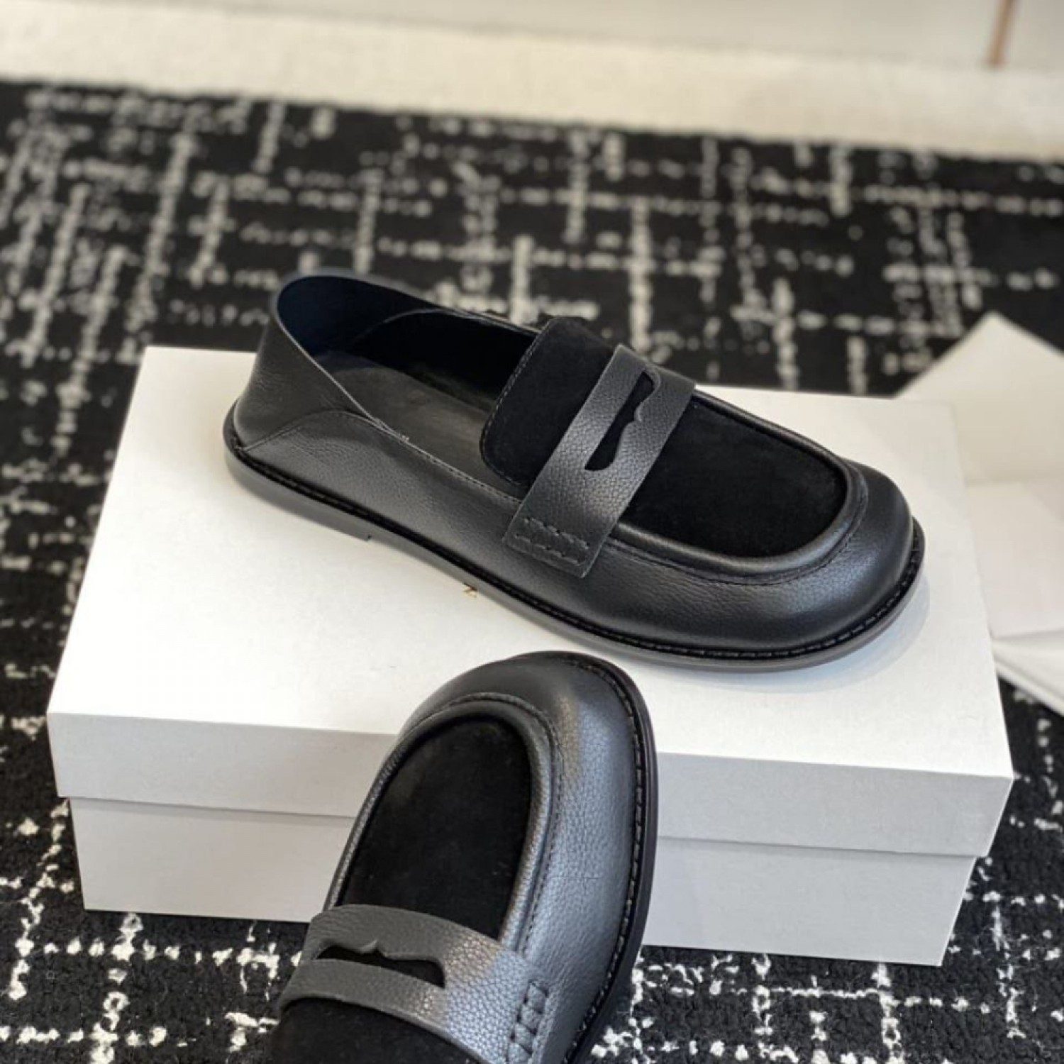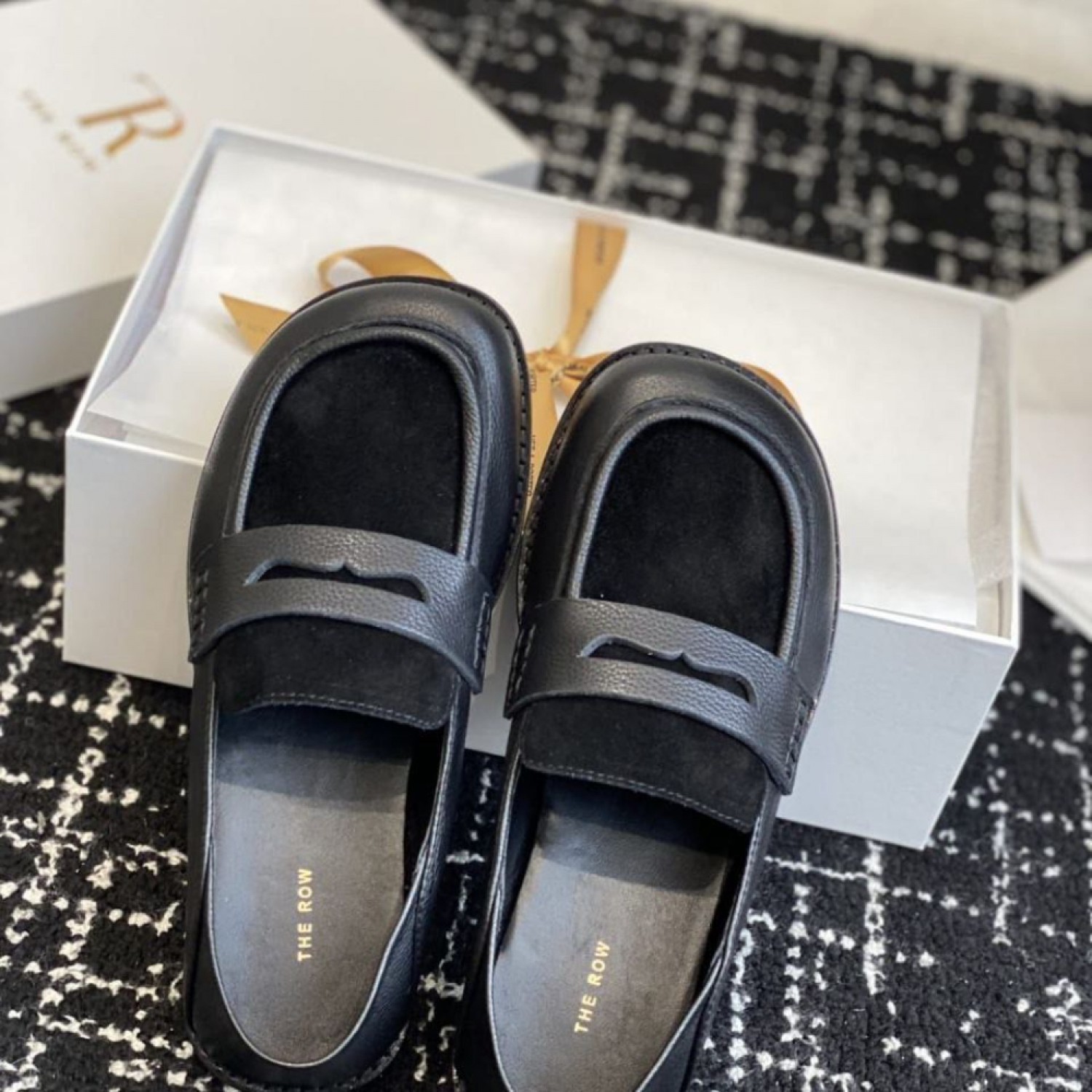 - Легкие мокасины из мягкой замши из телячьей кожи с овальным носком, прошитым ремешком и многослойным каблуком.
