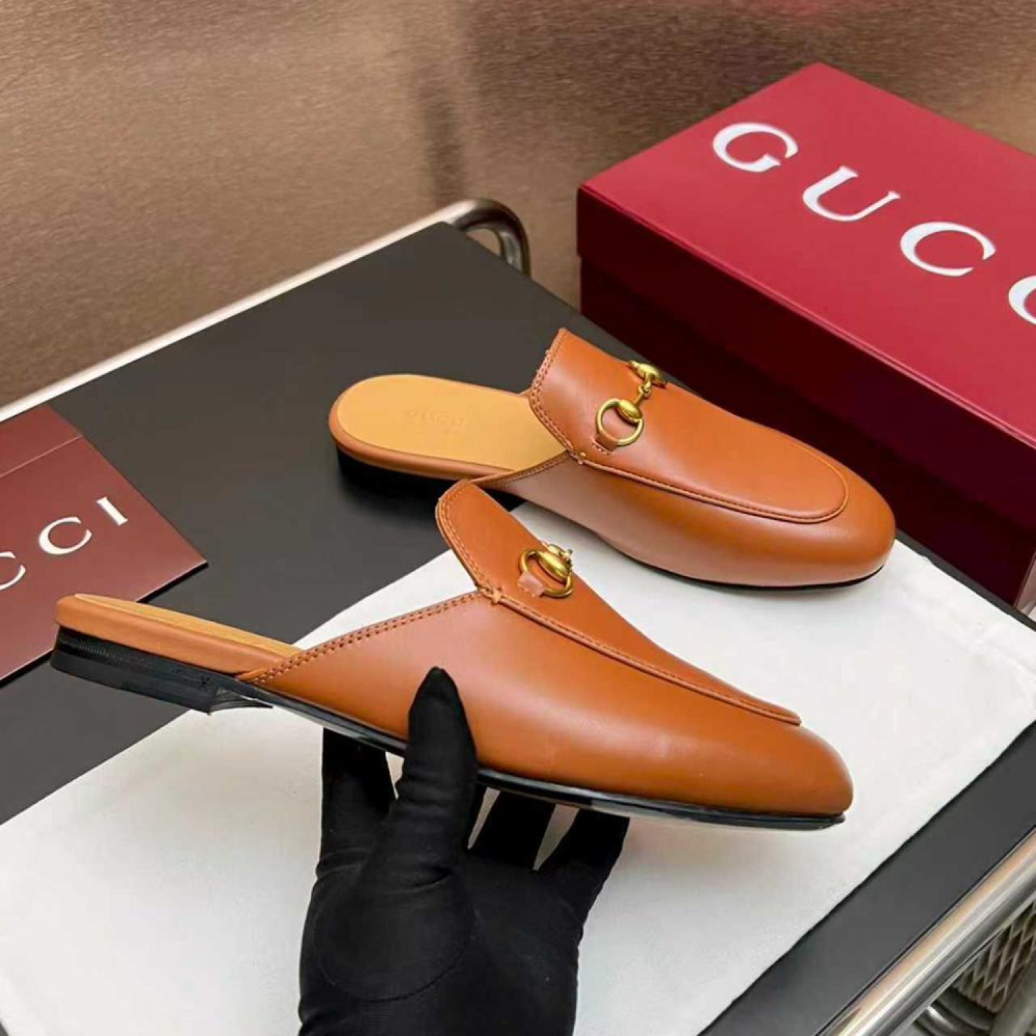 - Модель Princetown, ставшая визитной карточкой Gucci с момента своего дебюта на показе осень-зима 2015, представлена в кожаном исполнении. Модель в стиле мюли украшена характерным золотистым символом Horsebit, вдохновленным миром конного спорта.