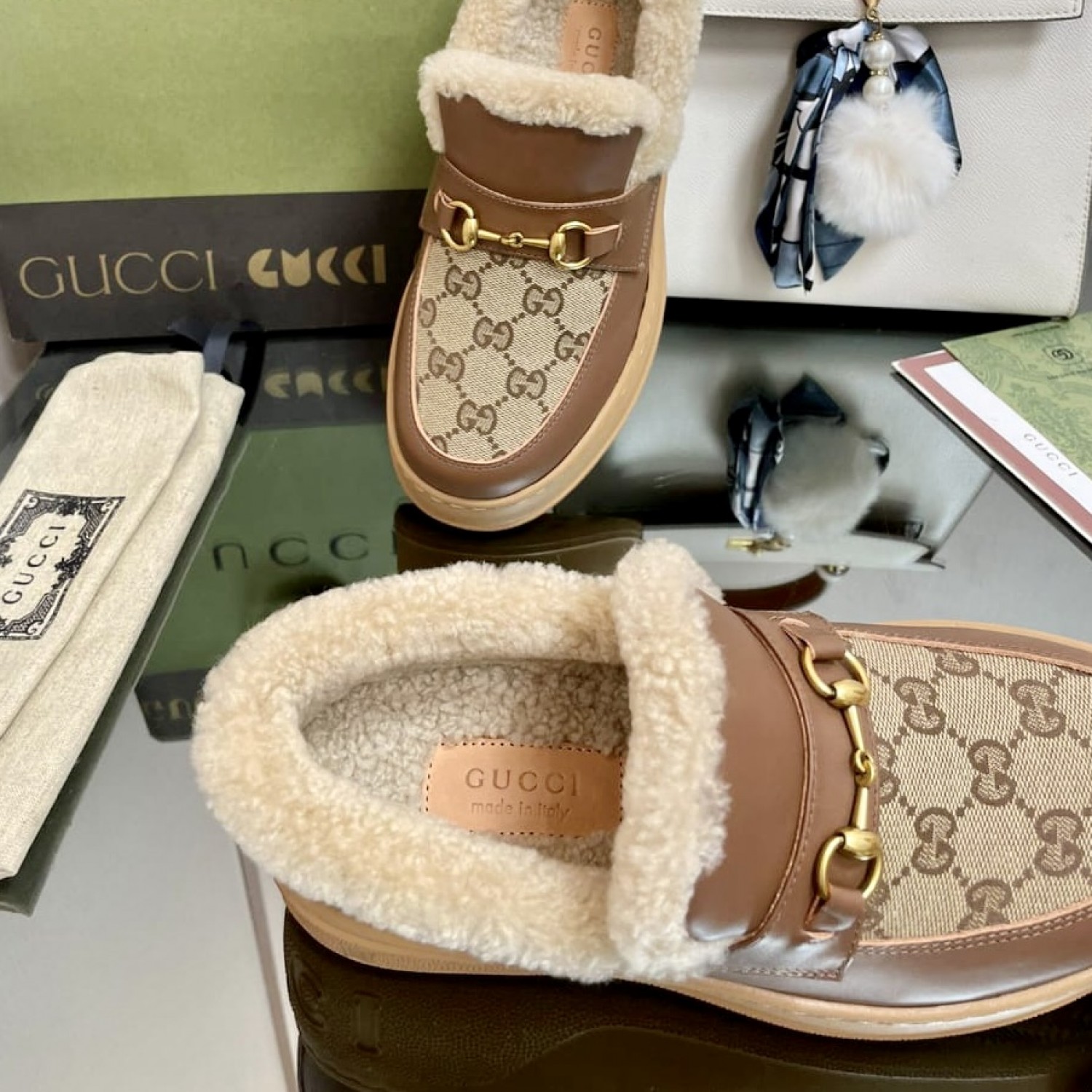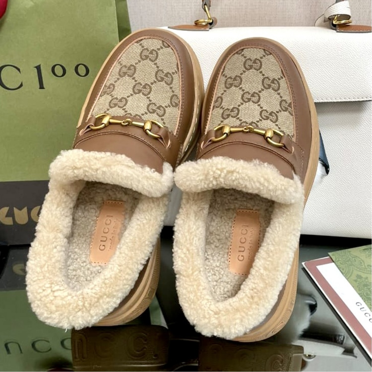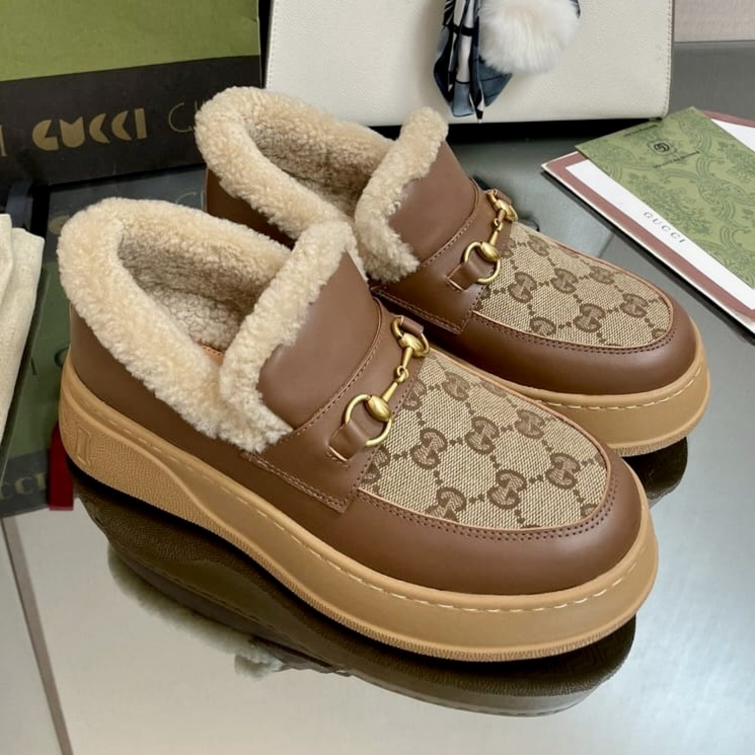 Зимние лоферы Gucci Horsebit с узором GG PREMIUM качества