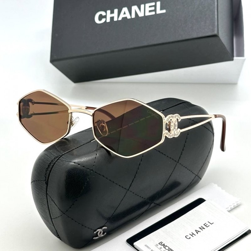 Для создания очков в фигурной шестиугольной оправе с регулируемыми носоупорами использовали сочетание легкого металла и гладкого ацетата, из которого выполнены закругленные заушники. Тонкие дужки украшены крупной эмблемой в виде двух перевёрнутых подков. Градиентные линзы обеспечивают 100% защиту от ультрафиолетовых лучей.